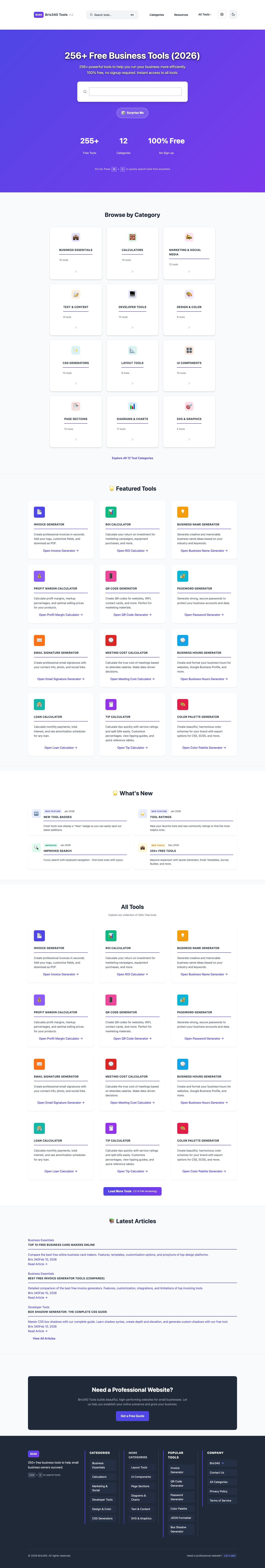 NewBrix340 is a free, no-login-required web application with 257+ production-ready business tools for small business owners, freelancers, and early-stage founders. Tools include invoice generators, QR code makers, ROI calculators, PDF generators, design utilities, and more. Zero friction — users visit, use a tool, and leave. Built on React + Vite with a fully static architecture, meaning zero hosting complexity, no database, and near-zero operating costs (~$15/year for the domain). The site has a complete SEO infrastructure already in place: sitemap, canonical URLs, schema markup, and prerendered HTML for all 257 routes. A detailed 100-page SEO optimization roadmap is included, scoped and ready to execute. The entire project is also set up to be managed via AI coding tools, dramatically reducing ongoing maintenance overhead.